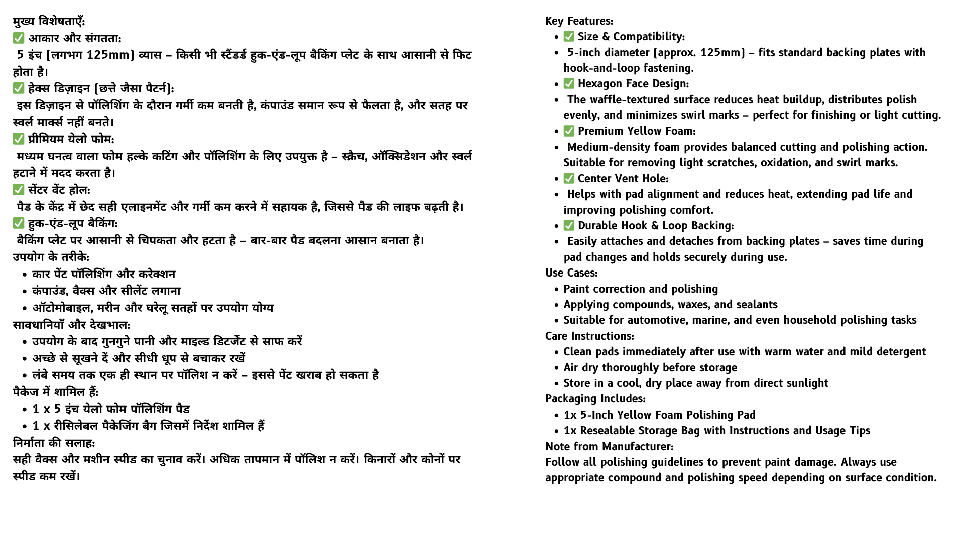5-Inch Dual Action Polishing Pad – Yellow Foam Buffing Pad with Hex Grip Surface & Hook-and-Loop Backing