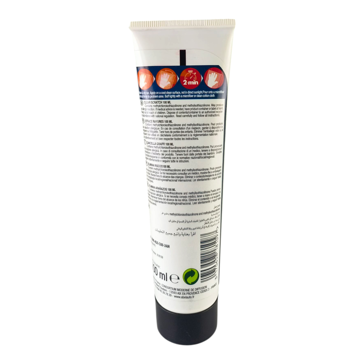 Abel Auto Clear Scratch Dark Grey is a scratch remover specially designed to restore and conceal minor surface scratches and imperfections on vehicles with dark grey paint. It is easy to use and works in just 2 minutes. The formula contains fine abrasives and pigments that help blend the scratch with the original car color, improving the appearance without needing repainting.