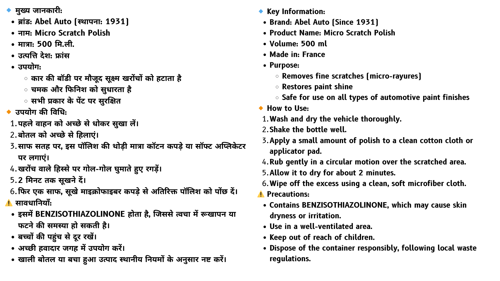 Abel Auto Micro Scratch Polish – 500 ml | Car Paint Restorer