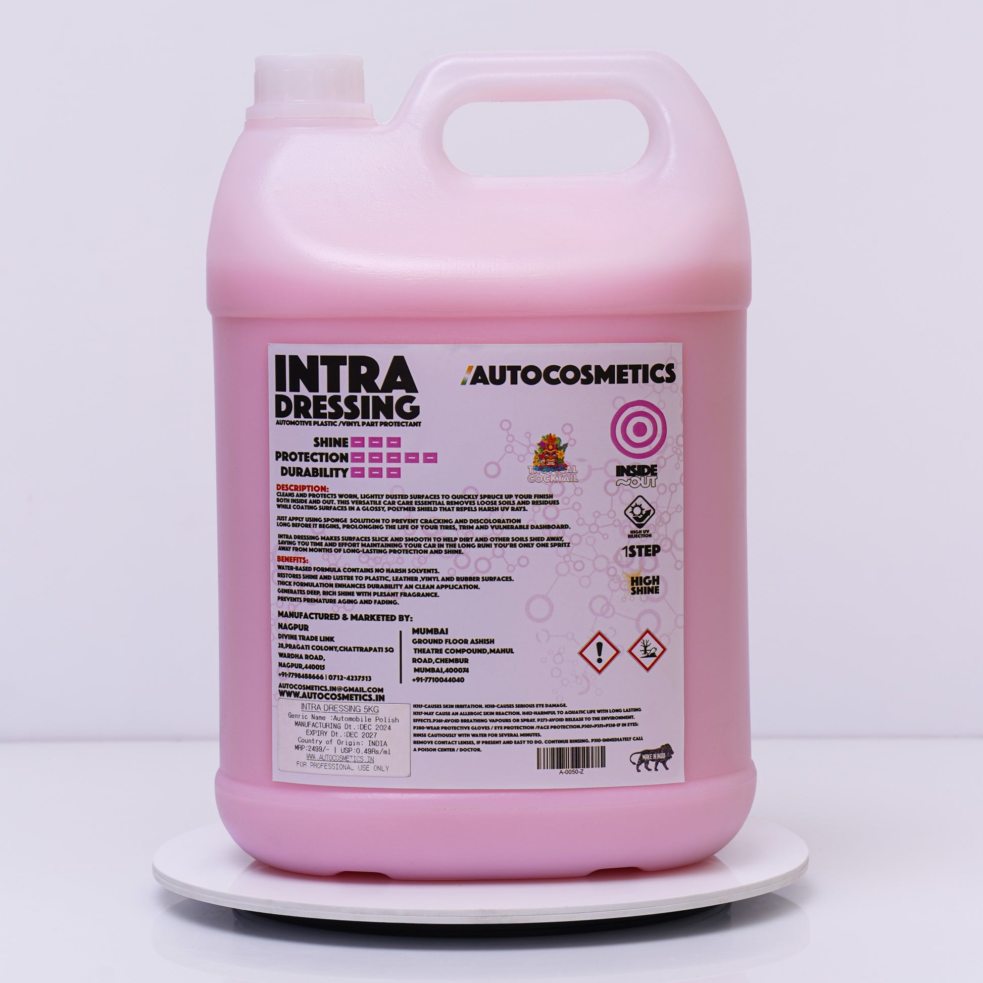 Intra Dressing 5KG – High Shine Plastic, Vinyl & Rubber Restorer | Long-Lasting UV Protection | Professional Car & Bike Detailing | Autocosmetics