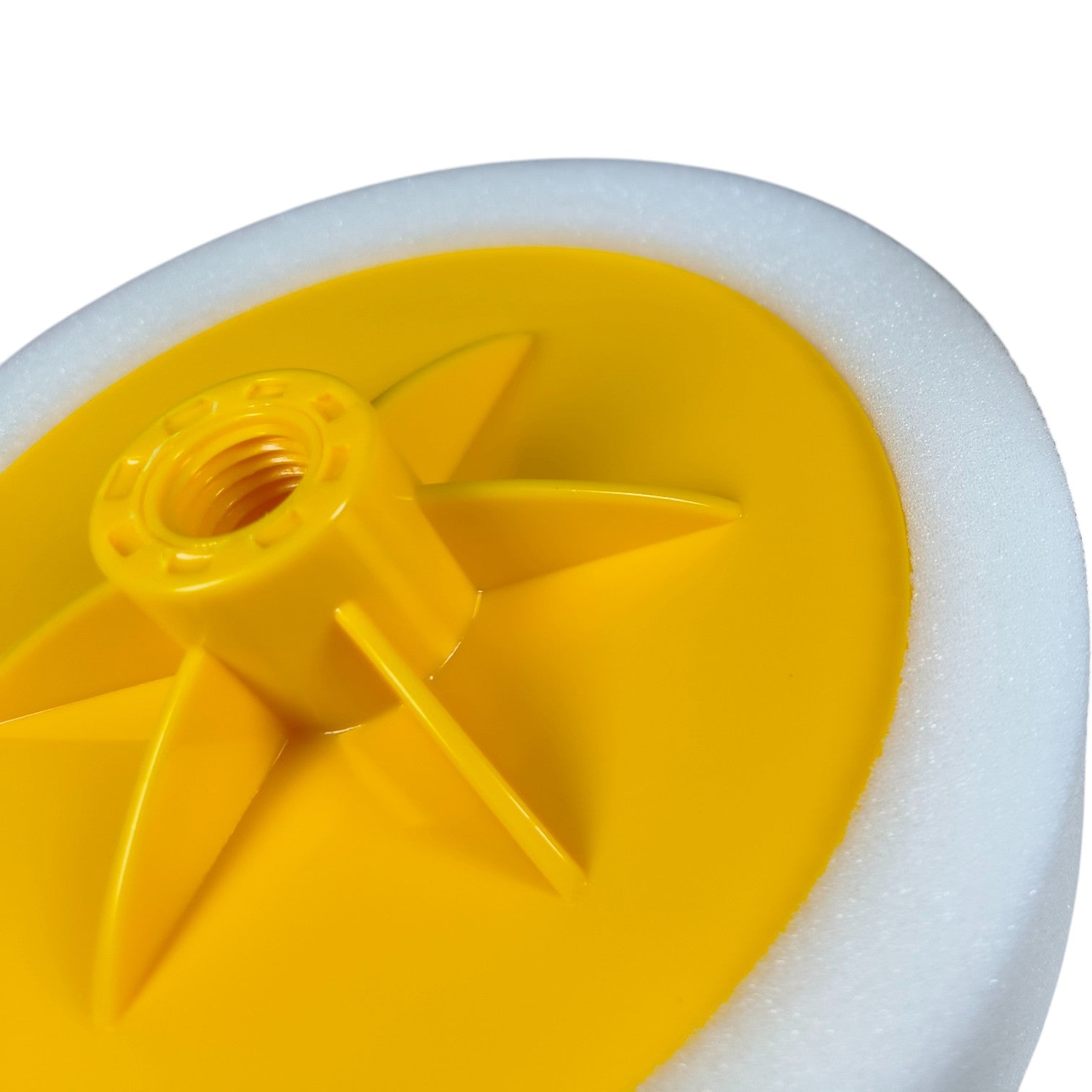 The White Hard Mop Sponge Pad (150mm x 50mm, M14 thread) is designed for aggressive rubbing and polishing tasks on automotive surfaces. Its dense, hard foam construction delivers exceptional cutting performance—quickly eliminating heavy scratches, oxidation, and surface defects. With a 150mm diameter and 50mm thickness, this pad offers broad coverage, ensuring efficient paint correction on larger panels. The durable M14 threaded plastic backing plate provides universal fitment for rotary polishers, ensuring quick pad changes and secure attachment. Ideal for professional detailers and workshops demanding maximum durability and correction power.